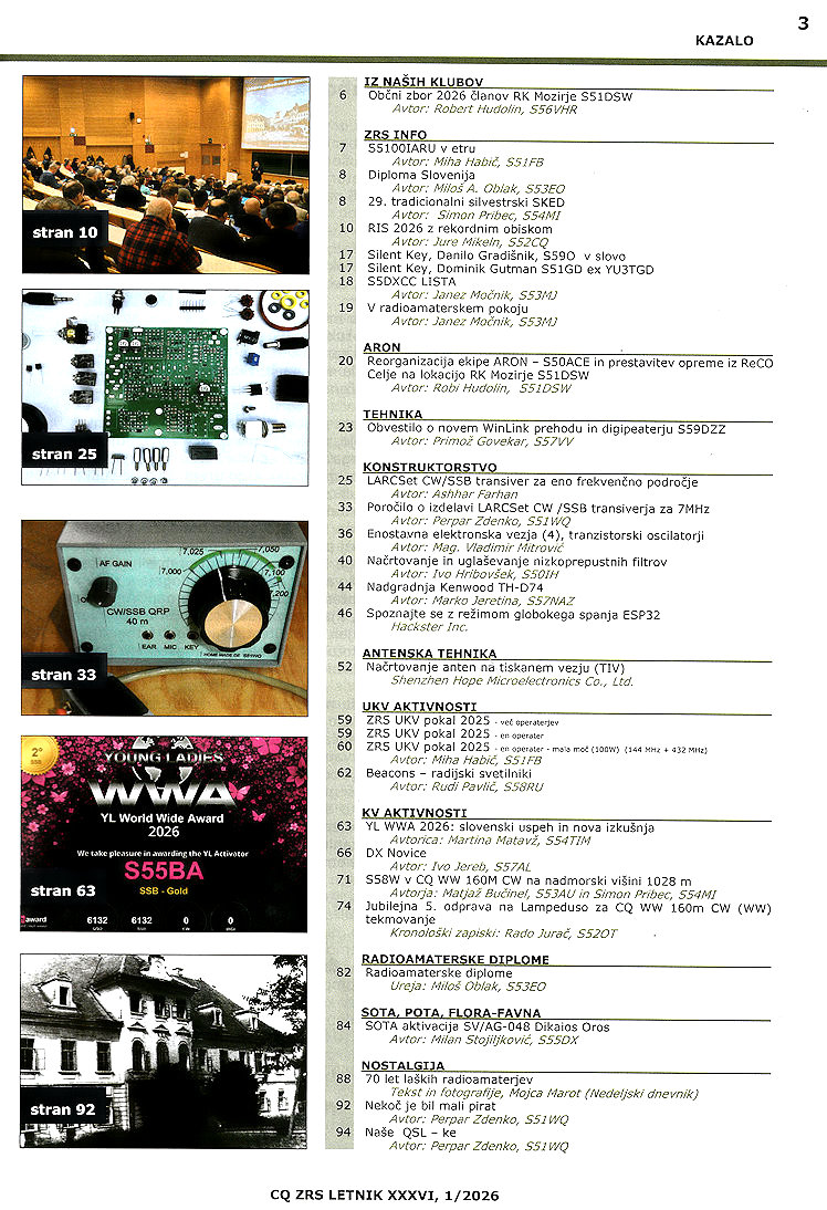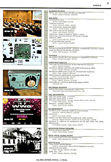 Sam pa za pokušino prikažem le kazalo revije, da bi člani, ki ne prejemajo revije, videli, kakšna je vsebina in bi si lahko izvod izposodili pri kakem prijatelju, ki revijo redno prejema. Takole izgledajo kazala v reviji CQ ZRS. In kazalo najnovejših revij, ki še niso zajete in prikazane na spletni strani.